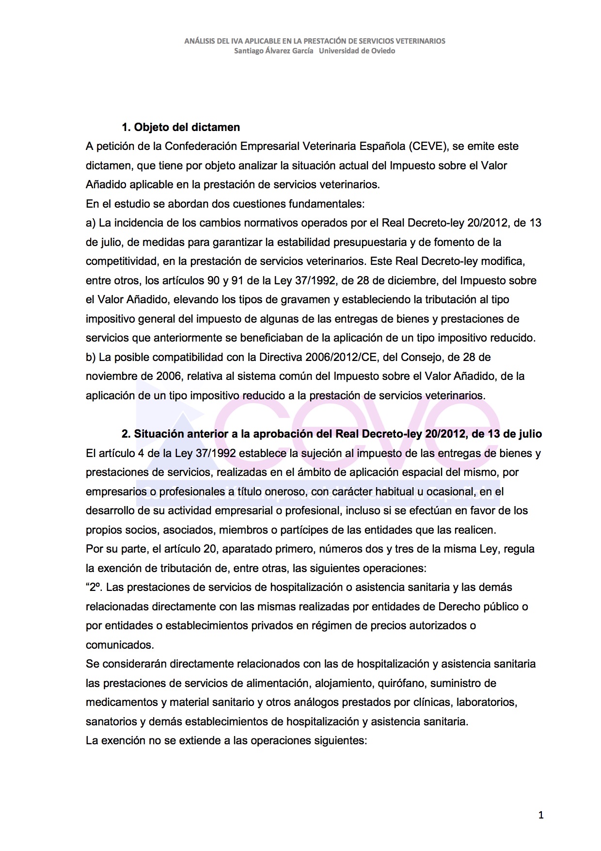 ANÁLISIS DEL IVA APLICABLE EN LA PRESTACIÓN DE SERVICIOS VETERINARIOS