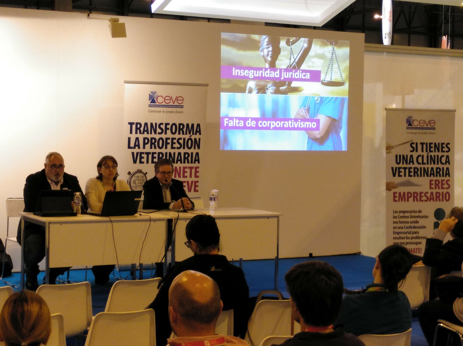 En el marco del salón Propet 2018, la CEVE organizó una mesa redonda en la que Delia Saleno, presidenta de CEVE, Sebastià Rotger, Responsable del Departamento Laboral, y Juan Sirvent, miembro del equipo negociador del convenio de Alicante, expusieron la situación económica y laboral de los centros sanitarios veterinarios, la repercusión de la implantación de un convenio colectivo en el sector y la experiencia de la negociación y de la aplicación del convenio de Alicante, el único de estas características vigente en España.